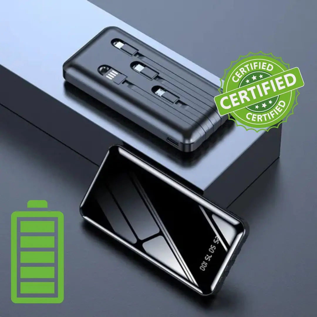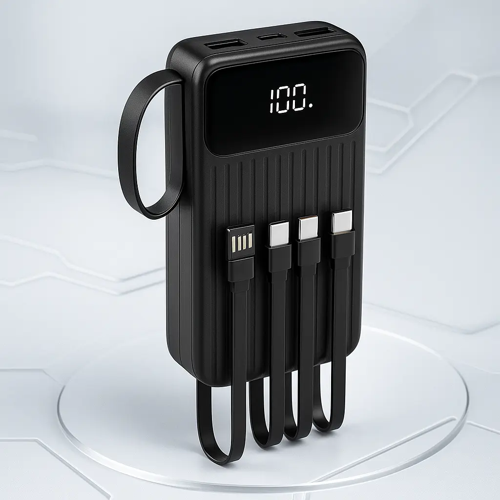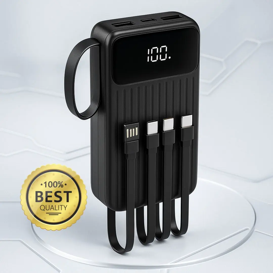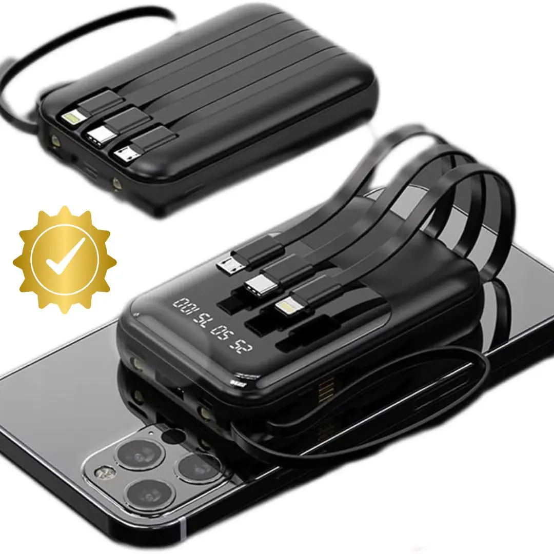🔋 PowerBank Portátil 10000 mAh Carga Rápida con Linterna LED + Cables Integrados