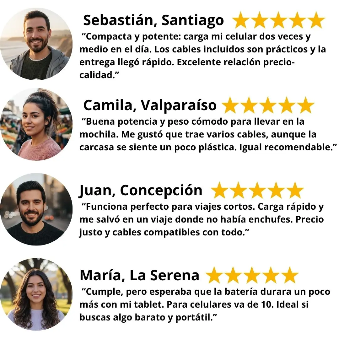 Disfruta de varias cargas completas sin depender de enchufes. Ideal para viajes, trabajo o emergencias.