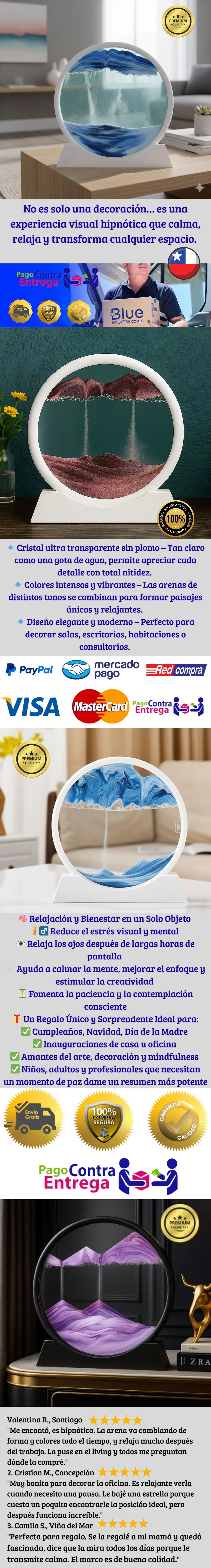 "Me encantó, es hipnótica. La arena va cambiando de forma y colores todo el tiempo, y relaja mucho después del trabajo. La puse en el living y todos me preguntan dónde la compré."